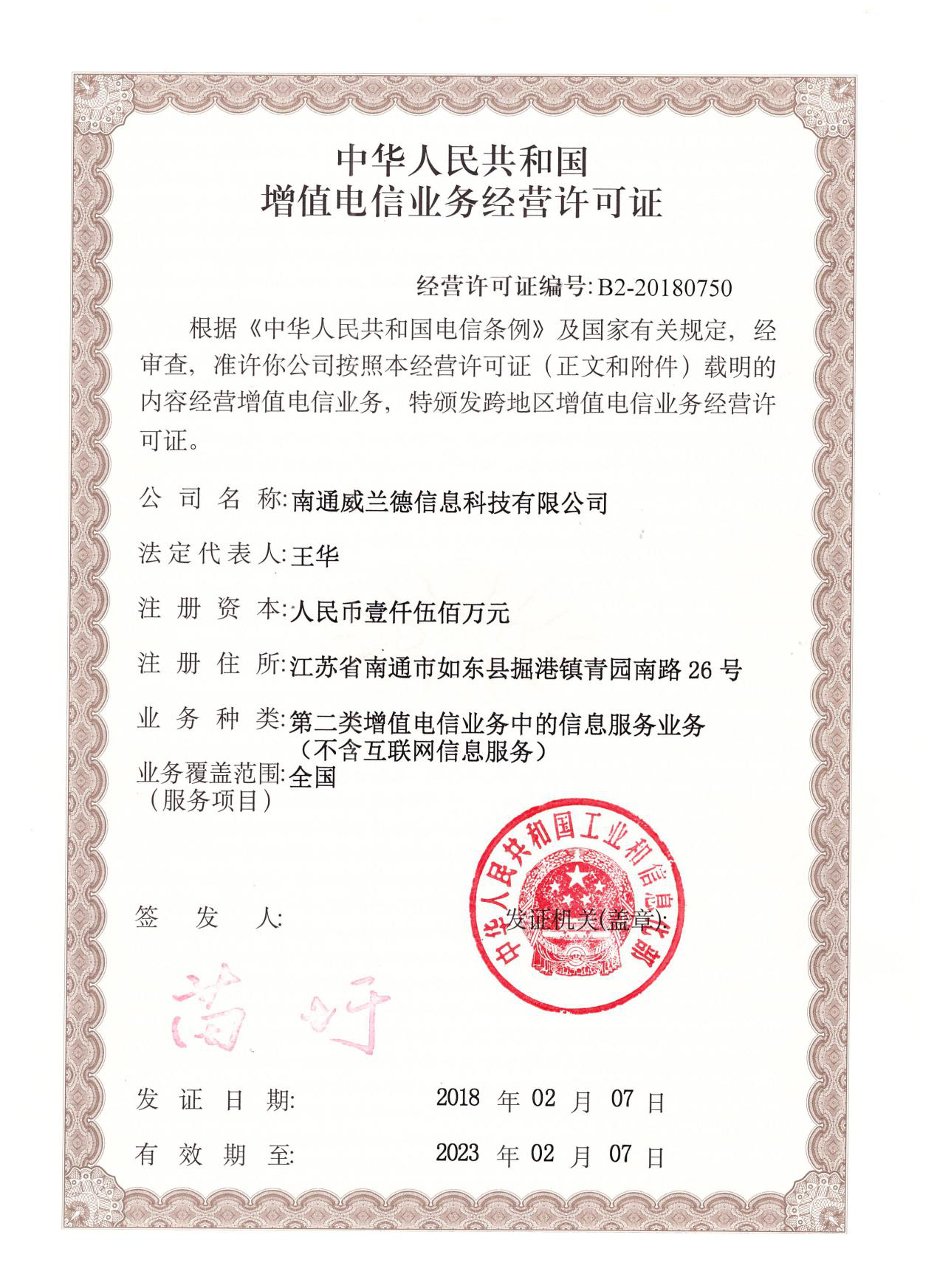 增值電信業(yè)務(wù)經(jīng)營許可證
