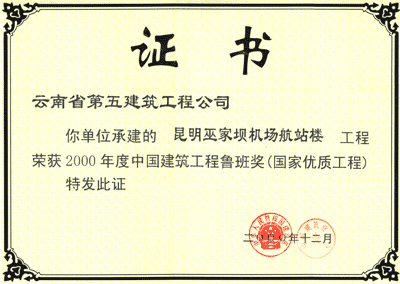 機(jī)場(chǎng)魯班獎(jiǎng)狀