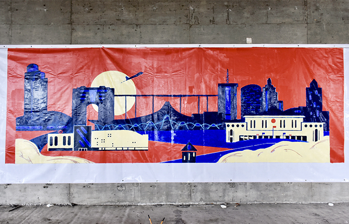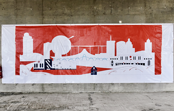 下午2點(diǎn),涂鴉活動(dòng)正式開始,公司團(tuán)委精心準(zhǔn)備了一幅長6米寬2米的畫卷,未上色的白底上,黑色線條勾勒出9座建筑,其中8座展示了公司獲得的8個(gè)魯班獎(jiǎng),余下一座則是興冶廣場項(xiàng)目一標(biāo)段的兩棟高層建筑。