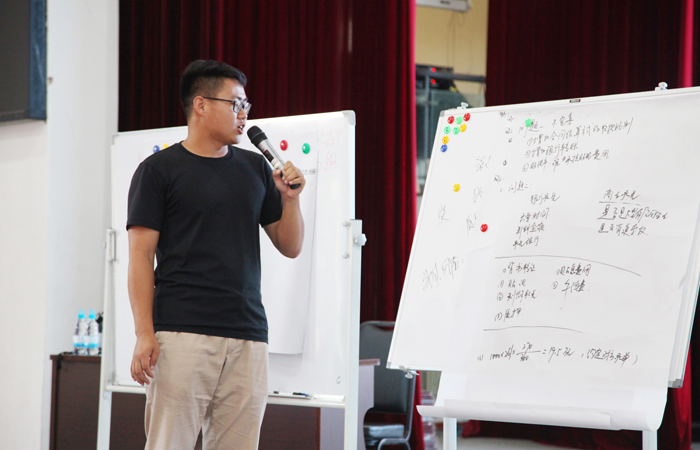此次培訓(xùn)方式不同于以往的“你聽我講”,而是打破固定的聽課席位,每個小組8個成員圍坐在一起擺成一個個“u”字形,每個小組成員打散,財務(wù)、經(jīng)營等各口相關(guān)人員隨機(jī)組合,8分鐘案例分析充分調(diào)動小組成員積極性,大家緊密合作、碰撞觀點,主動上臺講解課題,為小組贏分,甚至還根據(jù)自己專業(yè)知識延伸題外知識點,不放過加分的機(jī)會,講師也會走進(jìn)小組與學(xué)員互動,“你問我答”,讓學(xué)習(xí)傳導(dǎo)更加自然生動,學(xué)思成效一目了然。