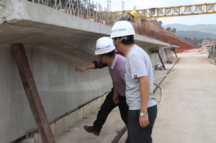 進入施工現(xiàn)場后,大家細細查看了現(xiàn)場。“那邊就走到頭兒過不去了。”在T梁養(yǎng)護場,大家走到了最底處,對每一片梁的情況都有了了解。隨后,大家對各個工段都進行了查看,人材機配置大家都在心里默記著數(shù),并拿出手機不停記錄現(xiàn)場情況。