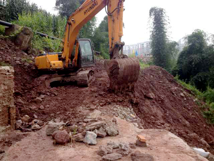 綏江項目部臨時組建了救援隊作為“先頭部隊”趕往受災(zāi)現(xiàn)場,可眼前的一幕讓他們驚呆了,小文橋下方排洪溝阻斷造成鄉(xiāng)鎮(zhèn)道路沖毀三分之一,幾十個村民正冒著暴雨將家中的物資向城里轉(zhuǎn)移;中城鎮(zhèn)鳳池17隊上方泄洪溝已斷裂垮塌,十幾個小伙子正在用鐵鍬冒雨將石塊堵住的泄洪溝挖開?!翱?!你們幾個去幫老鄉(xiāng)搬運轉(zhuǎn)移,你們幾個跟我到下邊去!”“挖機呢?快把挖機師傅都叫來……”盡管暴雨重重地打在臉上和身上,卻沖刷不掉救援隊員鏗鏘有力的吶喊聲。