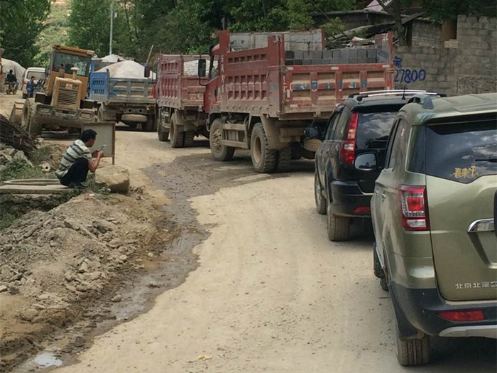 如果說龍頭山項目是因“快”而難,那么樂紅項目就是因為“堵”而難,到過樂紅鎮(zhèn)的每個人對此都深有感觸。項目必經(jīng)的交通要道在地震后路況復雜,從龍頭山到樂紅鎮(zhèn)的鄉(xiāng)村道路在地震中遭到破壞正在維修,路上擁堵點多。所以盡管項目不大,但由于路況原因交通不暢,各項工作都很難開展。