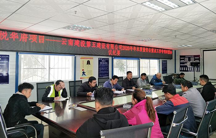 11月20日,公司副總經理施文鐘在大理龍悅華府項目調研,召開專題會議,傳達集團、公司年末質量安全隱患排查及重點工作專項布置會議文件精神。