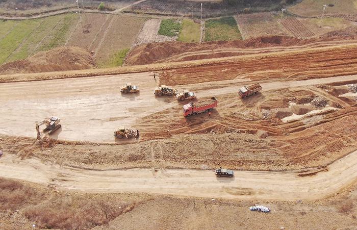 施鏈高速二分部大干春季的施工熱潮未退,各個工作面全面開展,機械設備此起彼伏的的轟鳴聲、車水馬龍的運輸車輛穿梭在填方區(qū),本項目部路基挖方有83.7萬方,填方106.5萬方,目前路基土石方工程施工正常,為加快填方路基施工進度,現(xiàn)場現(xiàn)有45輛渣土車運料,保證填方路基有充足填料,同時要求路基班組夜間加班施工,當天的填料必須平整碾壓完成,防止夜間下雨及次日無場地堆放填料,從而保證路基填筑施工進度。