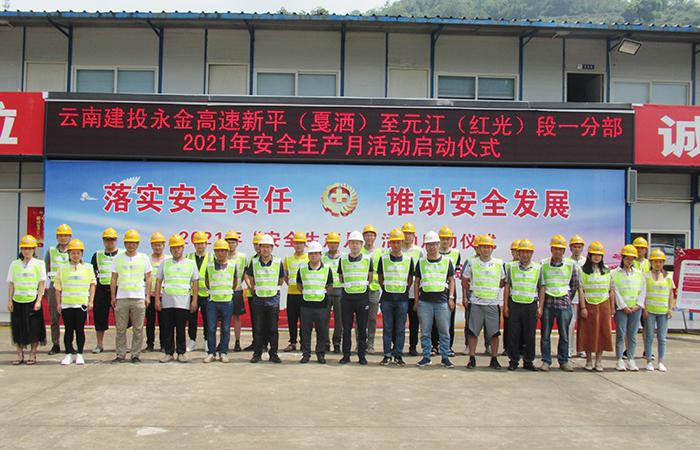 6月8日下午,永金高速新平(戛灑)至元江(紅光)段土建一分部在項(xiàng)目部舉行以“落實(shí)安全責(zé)任,推動(dòng)安全發(fā)展”為主題的安全生產(chǎn)月啟動(dòng)儀式,直管部書(shū)記、直管部安全總監(jiān)、總監(jiān)辦副總監(jiān)、項(xiàng)目經(jīng)理、總工、項(xiàng)目部全體管理人員參加。