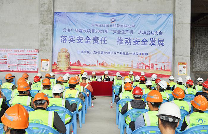 6月11日上午,興冶廣場(chǎng)建設(shè)項(xiàng)目一標(biāo)段現(xiàn)場(chǎng),伴隨著“落實(shí)安全責(zé)任,推動(dòng)安全發(fā)展……”的洪亮宣誓聲,五〇五直管項(xiàng)目部2021年安全生產(chǎn)月活動(dòng)正式開始。