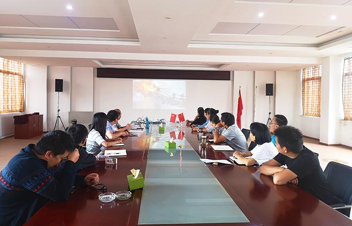 7月1日,路橋二部組織16名二線職工在直管部會(huì)議室觀看紅色電影《我的長(zhǎng)征》。