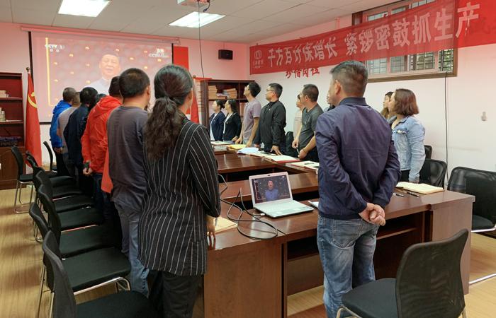 觀看過程中,五〇七生產(chǎn)管理群傳來各項目部觀看的情況及現(xiàn)場照片。黨支部群里黨員同志們紛紛發(fā)出云嶺先鋒里慶祝中國共產(chǎn)黨成立100周年的自己黨齡的截圖。直管部干部職工精神振奮、心情激動、神情專注,會場經(jīng)常想起熱烈的掌聲。當(dāng)播放國歌時,全體參會人員自發(fā)肅穆起立,齊唱國歌。