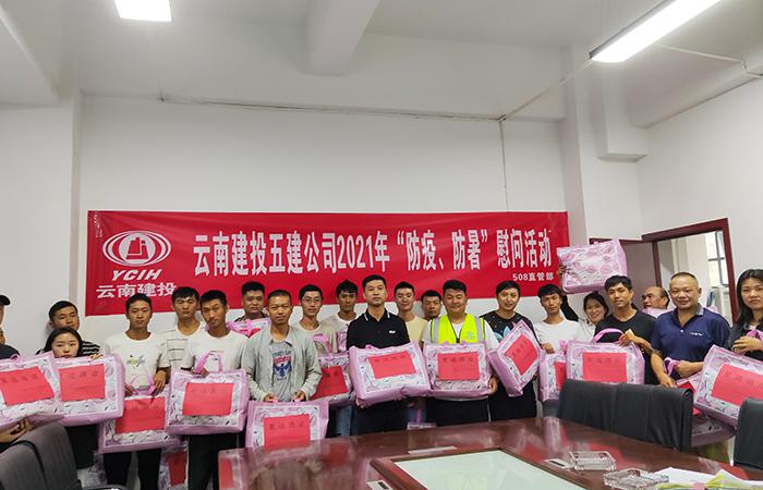 7月31日,508直管部在六盤水鳳凰臺(tái)項(xiàng)目部開展送清涼慰問(wèn)活動(dòng),為奮戰(zhàn)在一線的30名管理人員送去了夏涼被、防暑藥品等防暑降溫物品,把清涼送到了作業(yè)一線,把關(guān)懷送到了員工的心坎。