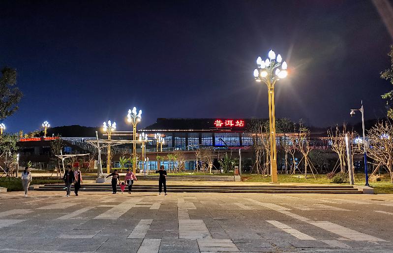在沿線數(shù)個站點中,由五公司第二安裝直管部參建的普洱站前廣場是“一帶一路”玉磨鐵路國內(nèi)段建設規(guī)模最大,建設標準最高的站前廣場。項目如期完成65400米的電纜敷設工作,435臺配電箱、7臺干式變壓器、44臺高低壓柜體、4325盞燈安裝亮燈調(diào)試工作,由項目部點亮的一盞盞燈,真正照亮了每一位出行者腳下的路。