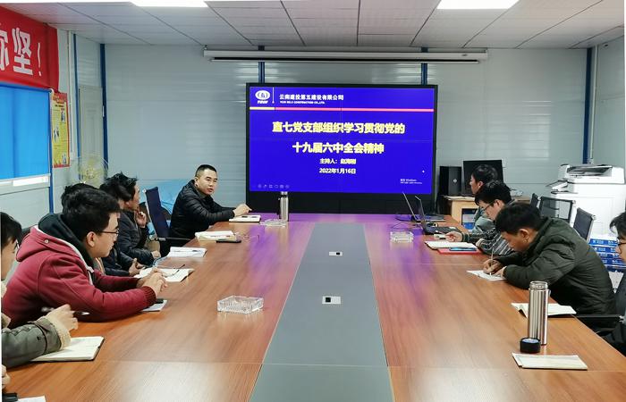 1月16日,直七黨支部組織二線管理人員以及云南師大項目一線職工在項目部會議室集中再次學習黨的十九屆五中、六中全會精神。