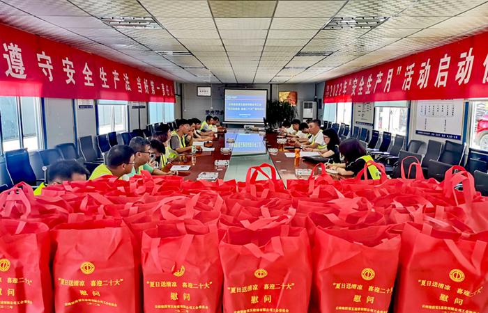 炎炎夏日送清涼,絲絲關(guān)愛入心田。8月10日,公司工會主席冷蕊帶隊深入永金高速新平(戛灑)至元江(紅光)段一分部、彌勒至玉溪高速公路勘察試驗段象山段項目開展2022年“夏日送清涼 喜迎二十大”慰問活動。