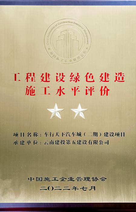 近日,中國施工企業(yè)管理協(xié)會發(fā)布了2022年“工程建設(shè)綠色建造施工水平評價”結(jié)果,公司車行天下汽車城(二期)建設(shè)項目獲二星評價。