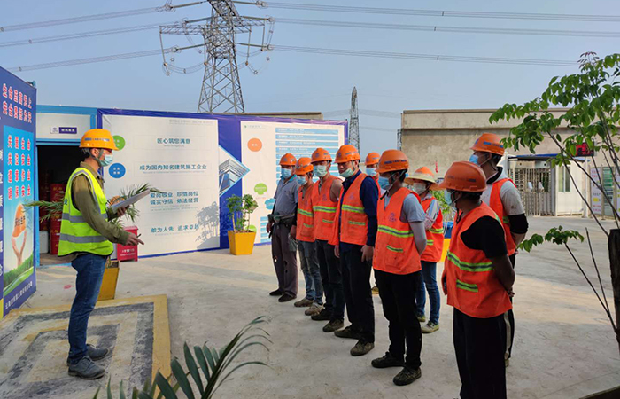 項(xiàng)目部以全國安全教育日作為教育主題,認(rèn)真開展班前安全教育工作。項(xiàng)目部督促班組長對(duì)操作人員進(jìn)行5-10分鐘的班前安全教育,排除安全隱患,告知現(xiàn)場危險(xiǎn)源,提高作業(yè)人員安全防范意識(shí)。