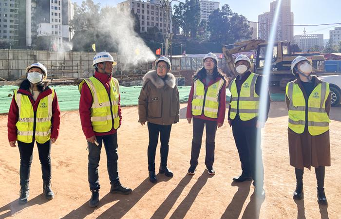 1月12日,公司工會主席冷蕊到五〇四直管部西城時代西錦里項目部開展帶班檢查,深入工地,查看工程進度,檢查安全隱患。