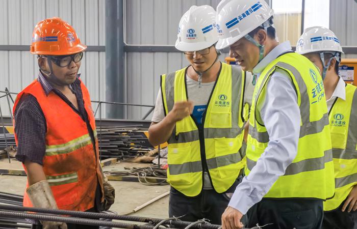 石俊一行通過實(shí)地查勘項(xiàng)目施工現(xiàn)場(chǎng)、座談等方式對(duì)項(xiàng)目生產(chǎn)推進(jìn)、安全質(zhì)量、文明施工、成本管控及存在的困難等情況進(jìn)行了逐一了解并提出要求。