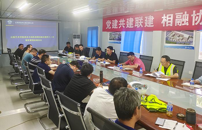 6月27日下午,由公司生產(chǎn)管理部組織公司策劃小組、五〇五、五〇八、第二、第三、第六、第九、第十一直管項目部生產(chǎn)副經(jīng)理和主任工程師,在第七直管項目部、第一安裝直管項目部共同負責施工的云南藝術(shù)學院項目召開中間階段策劃驗收暨云南師范大學二標項目策劃總結(jié)會議。公司副總經(jīng)理楊永、副總工程師(主持工作)馬秉慶參會。