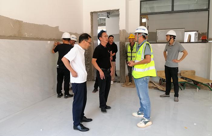 調(diào)研組到達(dá)項目施工現(xiàn)場后,詳細(xì)了解項目現(xiàn)階段工作開展情況,察看了綜合教學(xué)樓、男生宿舍樓、食堂報告廳的室內(nèi)裝修及門窗安裝情況,在聽取施工單位對項目剩余工作的匯報后,對下步工作做出詳細(xì)安排。
