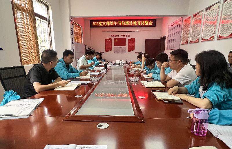 6月4日,五〇二直管項目部黨支部召開端午節(jié)前廉潔教育提醒會,在昆班子、項目人員及二線全體管理人員參加。