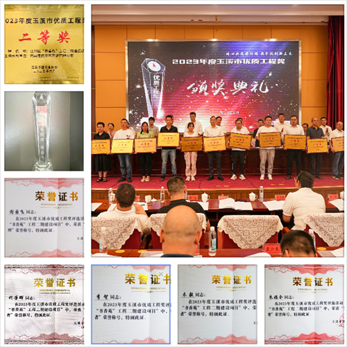 近日,在2023年度玉溪市優(yōu)質(zhì)工程獎(jiǎng)?lì)C獎(jiǎng)典禮上,由公司五〇一直管項(xiàng)目部負(fù)責(zé)施工的江川區(qū)“書香苑”工程二期建設(shè)項(xiàng)目榮獲“2023年度玉溪市優(yōu)質(zhì)工程二等獎(jiǎng)”榮譽(yù),項(xiàng)目經(jīng)理謝國(guó)飛榮獲“優(yōu)秀項(xiàng)目經(jīng)理”稱號(hào),項(xiàng)目技術(shù)負(fù)責(zé)人代榮輝、項(xiàng)目管理人員木毅、李智以及朱福全等4名同志榮獲“突出貢獻(xiàn)者”稱號(hào)。