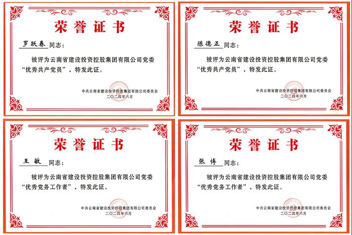 6月30日,云南建投集團(tuán)黨委召開慶祝中國共產(chǎn)黨成立103周年暨“兩優(yōu)一先”表彰大會。公司2名共產(chǎn)黨員獲評“優(yōu)秀共產(chǎn)黨員”榮譽稱號,2名黨務(wù)工作者獲評“優(yōu)秀黨務(wù)工作者”榮譽稱號。