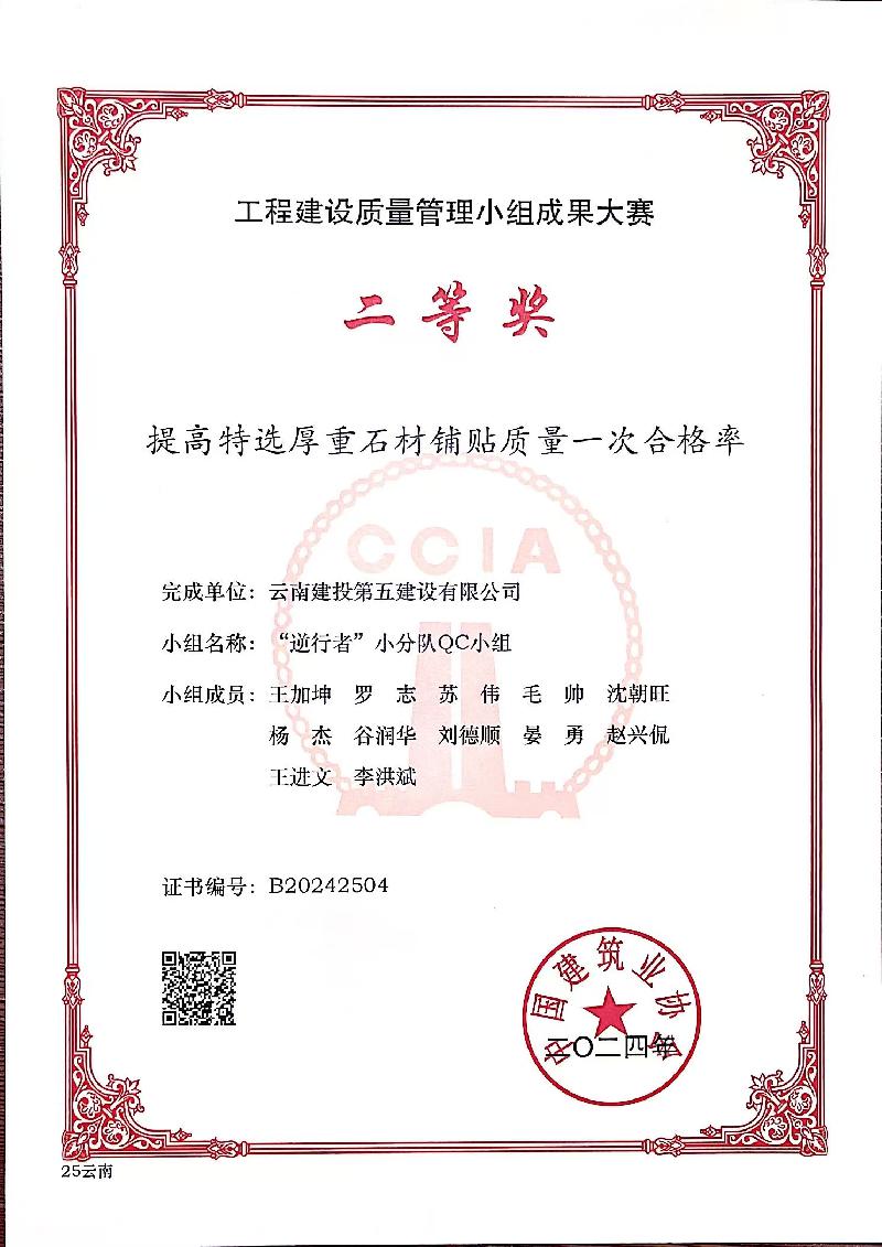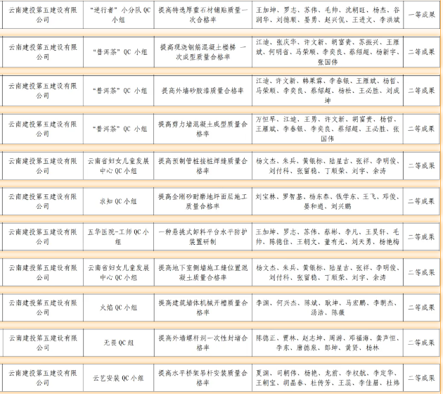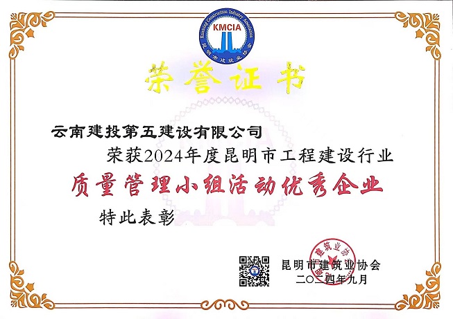 近日,昆明市建筑業(yè)協(xié)會、云南省建筑業(yè)協(xié)會及中國建筑業(yè)協(xié)會相繼頒發(fā)了2024年度工程建設(shè)質(zhì)量管理小組活動成果,公司憑借精細化的過程質(zhì)量管理和精益求精的品質(zhì)管理,榮獲2024年度中國建筑業(yè)協(xié)會工程建設(shè)質(zhì)量管理小組成果二等獎1項、云南省工程建設(shè)優(yōu)秀質(zhì)量管理小組成果11項、昆明市工程建設(shè)優(yōu)秀質(zhì)量管理小組成果4項,獲評昆明市建筑業(yè)協(xié)會“質(zhì)量管理優(yōu)秀企業(yè)”榮譽稱號。
