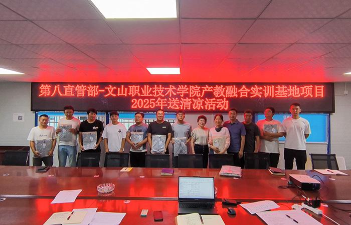 7月18日,第八直管部工會到文山職業(yè)技術學院產(chǎn)教融合實訓基地項目開展2025年送清涼活動,為堅守一線職工發(fā)放了防曬服,送上直管部工會最真摯的關懷。
