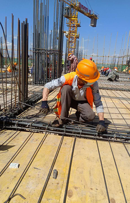 目前,住院樓已初成規(guī)模,四層、五層主體結(jié)構(gòu)施工已完成,現(xiàn)場(chǎng)兩臺(tái)塔吊車有力揮舞著臂膀,將鋼管、木方、層板等材料從低到高運(yùn)送,鋼筋工、木工、架子工等正緊張有序地在6層1段和2段安裝模板、綁扎鋼筋,在項(xiàng)目部的精心組織下,施工進(jìn)度正??煽?,主體結(jié)構(gòu)目標(biāo)如期完成指日可待。
