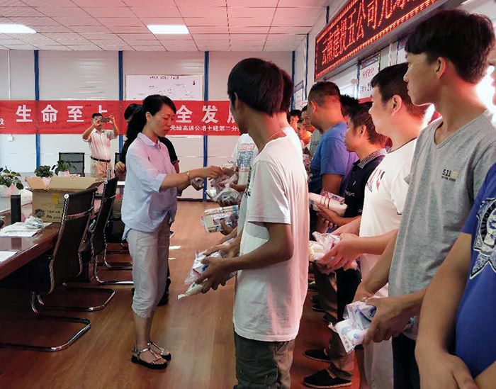 活動(dòng)中,公司工會(huì)分別為奮戰(zhàn)在項(xiàng)目一線的職工工發(fā)放了毛巾、香皂等慰問品,還為全體職工、農(nóng)民工送去了清涼油、藿香正氣水、板藍(lán)根沖劑、夏桑菊顆粒、保濟(jì)丸等防中暑藥物。過程中,冷蕊與項(xiàng)目部職工和農(nóng)民工代表進(jìn)行了親切交談,了解項(xiàng)目部衣食住行及防暑降溫措施,傾聽職工心聲與述求,囑咐項(xiàng)目部在生產(chǎn)時(shí),一定要關(guān)注高溫中暑和戶外施工人員疲勞因素等帶來的安全事故隱患宜,時(shí)刻牢記安全生產(chǎn)使命。
