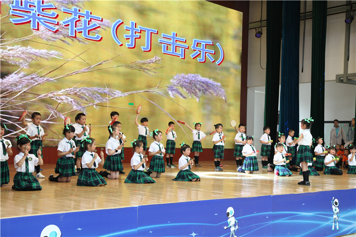 一大早,兩個(gè)園區(qū)的小朋友和家長們就在老師的引導(dǎo)下,按照預(yù)先規(guī)劃好的位置,一排排的坐在舞臺前。隨著來自大班的4名小主持人宣布表演開始,親子舞、群體舞蹈、時(shí)裝秀、舞臺劇迅速點(diǎn)燃了現(xiàn)場氣氛,掌聲和歡笑聲交織成了一片歡樂的海洋。