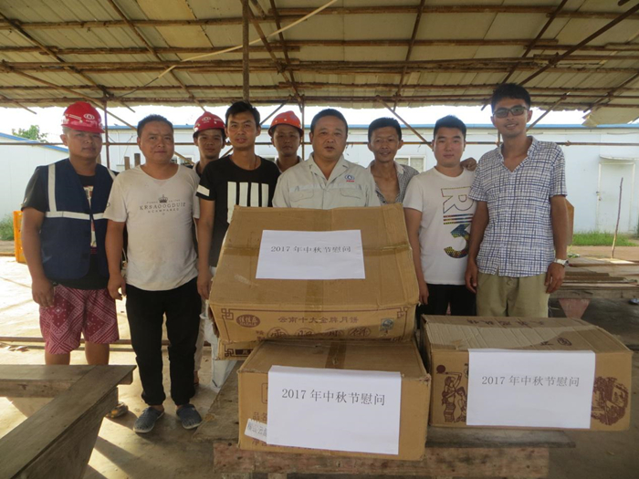 慰問組組長(zhǎng)周亞靈囑咐道:“雙節(jié)”期間,恰逢老撾開門節(jié),我們作為國(guó)家“一帶一路”的排頭兵,一定要遵守老撾當(dāng)?shù)仫L(fēng)俗,要樹立國(guó)家及企業(yè)的良好形象,爭(zhēng)當(dāng)企業(yè)“走出去”的帶頭人。