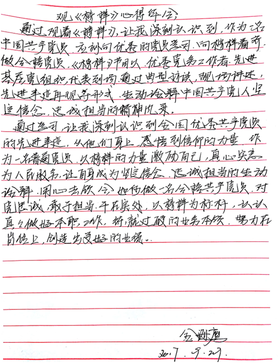 此次觀看節(jié)目的人員涉及機(jī)關(guān)各黨小組黨員、直管部班子領(lǐng)導(dǎo)、二線科室負(fù)責(zé)人及項目部負(fù)責(zé)人和普通職工共600余人,除集中觀看外,不少職工也自行開展了學(xué)習(xí)。觀看結(jié)束后,各黨支部結(jié)合實際工作開展了交流討論,并組織職工撰寫心得體會。
