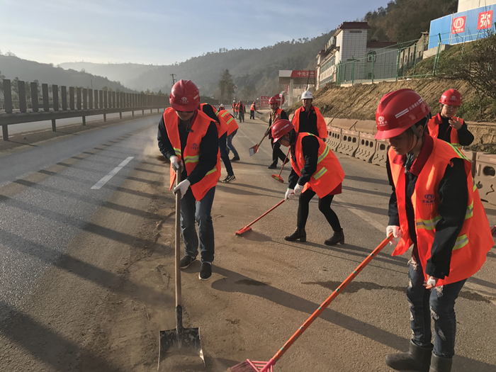 技術(shù)支持: 方森科技 2017年1月21日上午,路橋四部象山試驗(yàn)段項(xiàng)目部組織全體工作人員共計40余人開展“迎新春”義務(wù)清掃公路活動。全體工作人員積極參加,義務(wù)清掃了彌玉高速象山試驗(yàn)段1號隧道口304國道的沿途三公里區(qū)域。