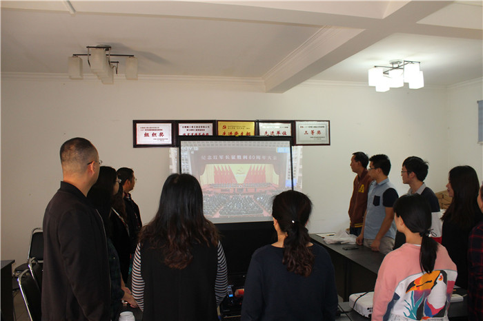 在習(xí)近平總書記提議:“全體起立,為在長征途中和在各地革命斗爭中英勇犧牲的革命烈士默哀!”時(shí)觀看直播的黨員及職工起立默哀。