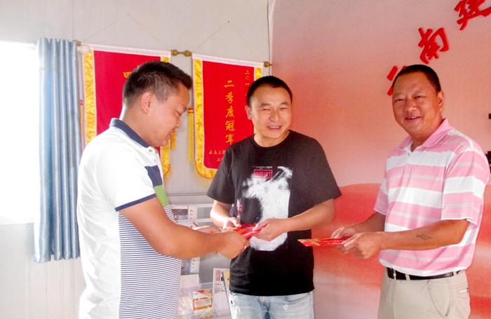技術支持: 方森科技 9月13日上午,通過微信轉賬的方式,身在個舊項目部的困難職工王顯厚首先領到第一筆中秋節(jié)困難職工慰問金。午飯后,五〇七直管項目部黨支部書記王俊安帶著問候直奔五里商務中心項目,把慰問金親自交到項目機械管理員李雪波和預算員施文兩位困難職工的手里。