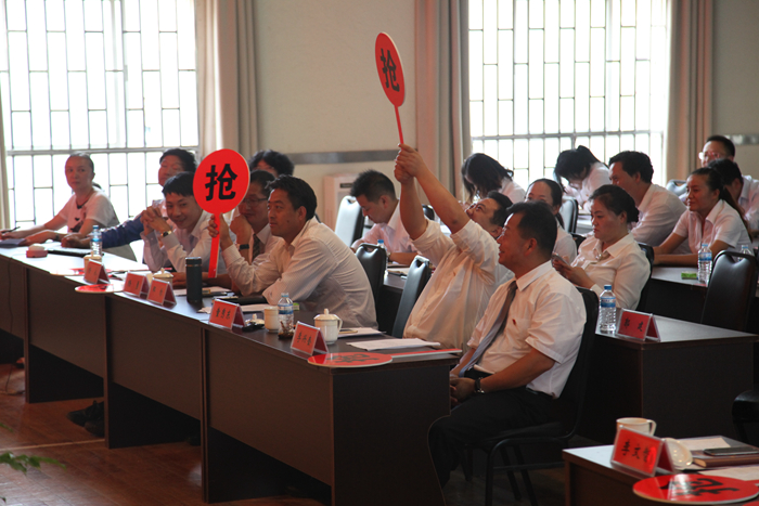 經(jīng)過(guò)初賽的角逐,進(jìn)入決賽的共有六支代表隊(duì),分別是:第五直管部、公司機(jī)關(guān)、五〇五直管部、五〇二直管部、租賃中心、第三直管部代表隊(duì)。決賽環(huán)節(jié)分為指定選手必答題、自選選手必答題、小組風(fēng)險(xiǎn)題、搶答風(fēng)險(xiǎn)題,決賽還特別加入了團(tuán)隊(duì)鼓勵(lì)題,由公司領(lǐng)導(dǎo)進(jìn)行搶答,為制定的代表隊(duì)進(jìn)行加分,極大的鼓舞了各代表隊(duì)的士氣。