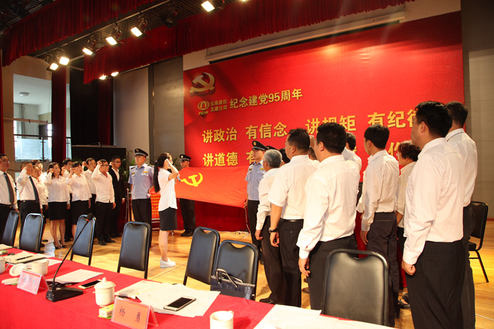 公司黨委委員、黨委工作部部長(zhǎng)陳俐樺帶領(lǐng)新發(fā)展的預(yù)備黨員進(jìn)行入黨宣誓
