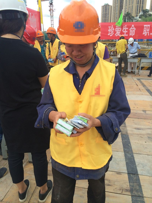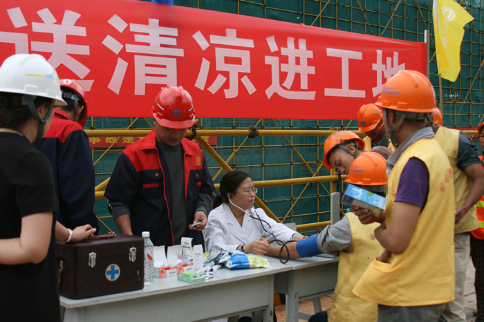 公司結(jié)合禁毒宣傳活動(dòng)同時(shí)開展送清涼活動(dòng),退管會(huì)劉秀偉醫(yī)生免費(fèi)為現(xiàn)場(chǎng)職工進(jìn)行心臟、脈搏、血壓等常規(guī)體檢,開展了防流感咨詢,宣傳了高血壓、高血脂、糖尿病等常見慢性疾病的預(yù)防保健知識(shí)。公司工會(huì)、五〇八直管項(xiàng)目部、五〇四直管項(xiàng)目部、第三安裝直管項(xiàng)目部一同為項(xiàng)目管理一線管理人員和勞務(wù)班組人員發(fā)放小風(fēng)扇、清涼茶、藿香正氣水、板藍(lán)根、風(fēng)油精、清涼油、保濟(jì)丸等十幾種預(yù)防夏季高溫中暑的藥物。還發(fā)放了創(chuàng)可貼、醫(yī)用酒精、棉球等日常外用藥品和200盒計(jì)生用品。