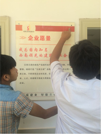 宣傳標(biāo)牌內(nèi)容有企業(yè)文化理念、“五講”教育、經(jīng)營管理理念、“五位一體”管理理念、黨風(fēng)廉政思想、“愛崗敬業(yè)、珍惜崗位、誠實(shí)守信、依法經(jīng)營”企業(yè)核心價(jià)值、公司獲魯班獎(jiǎng)項(xiàng)目展示以及各個(gè)科室崗位職責(zé)。所有標(biāo)牌都根據(jù)公司統(tǒng)一標(biāo)準(zhǔn)制作,整齊地懸掛在直管部辦公室樓梯間、走廊上及各科室顯眼位置。同事們都說:“標(biāo)牌安裝起來,整個(gè)直管部的企業(yè)文化氛圍更濃了,更漂亮了!”