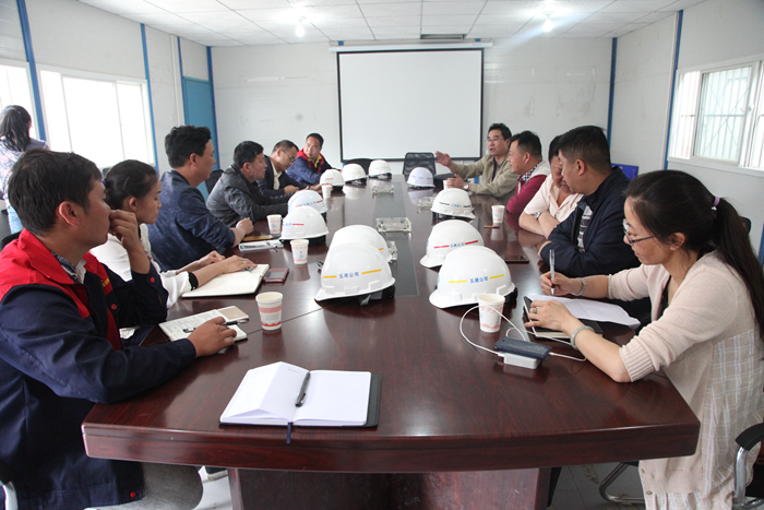 調(diào)研小組參觀了施工現(xiàn)場,聽取了工作匯報,詢問并了解了項目現(xiàn)狀及遇見的困難等。調(diào)研小組結(jié)合項目實際情況,圍繞“五位一體”、團隊建設(shè)、形象樹立等工作要求召開了座談會,對施工現(xiàn)場的平面布置、文明施工、班組管理、工期進度、成本策劃、團隊建設(shè)等工作作了相關(guān)要求和部署,對項目需要進行整改的地方提出相應(yīng)的意見和建議,公司駐項目部安全質(zhì)量總監(jiān)黃豫蜀及五〇四、五〇八直管項目部的經(jīng)理、書記、現(xiàn)場負責(zé)人共14人參會。
