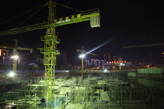 夜幕下的施工現(xiàn)場