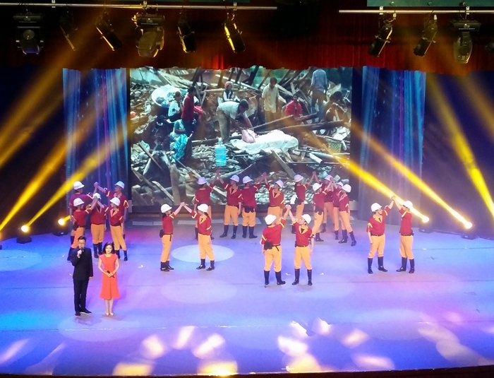 2014年9月20日,在集團(tuán)與省文化館在昭通市昭陽(yáng)區(qū)2012年保障房項(xiàng)目部聯(lián)合舉辦的抗震救災(zāi)文藝演出中,節(jié)目主要再現(xiàn)了集團(tuán)第一時(shí)間委派副總經(jīng)理沈家昆連夜奔赴災(zāi)區(qū),集團(tuán)18個(gè)單位積極響應(yīng)省委省政府和集團(tuán)公司號(hào)召迅速行動(dòng),兵分多路,形成多支強(qiáng)有力的應(yīng)急隊(duì)伍,投入到各受災(zāi)點(diǎn)的抗震救災(zāi)中,僅僅用了14天的時(shí)間完成263個(gè)受災(zāi)點(diǎn)10.24萬(wàn)平方米活動(dòng)板房的搭建工作,實(shí)現(xiàn)了學(xué)生9月1日的開(kāi)學(xué)目標(biāo)等事跡。