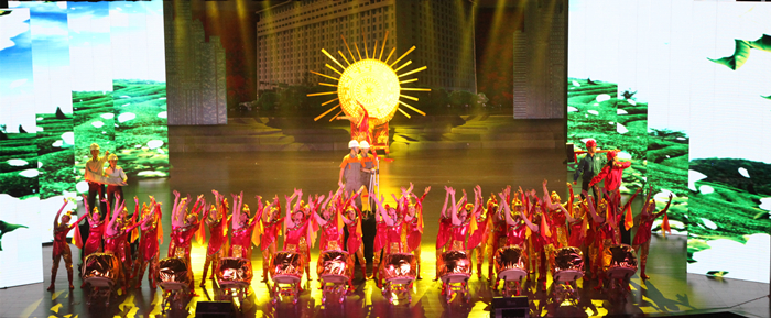 由我公司職工參與并聯(lián)合四公司職工演出的舞蹈《戰(zhàn)鼓催春》,通過歌舞的形式生動展現(xiàn)了云南建投廣大干部職工團(tuán)結(jié)一心,攜手共進(jìn),進(jìn)一步推動集團(tuán)轉(zhuǎn)型升級穩(wěn)健發(fā)展而努力奮斗的精神。