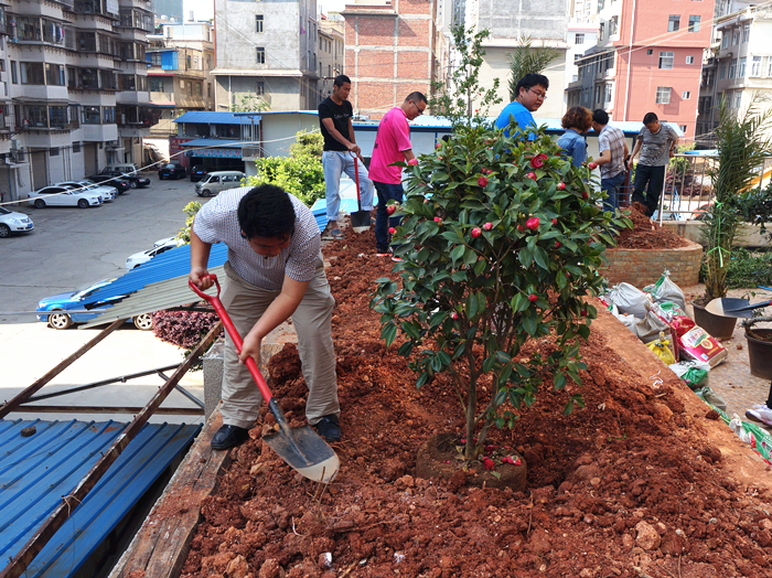 由于年初昆明氣溫變化較大,直管部室外花臺原有樹木受雨雪天氣影響,大部分被凍傷、凍死,為了美化辦公環(huán)境,直管部特組織此次活動,對受損的樹木和綠植進行修剪、置換。