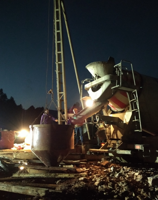 技術(shù)支持: 方森科技 2016年1月10日,五〇二直管項(xiàng)目部紅河州新安所至雞街高速公路項(xiàng)目五分部K21+440大木寨一號(hào)中橋樁基3B-2首樁清孔完畢后,泥漿比重、粘稠度、含砂率經(jīng)檢測(cè)合格后,同意澆筑。