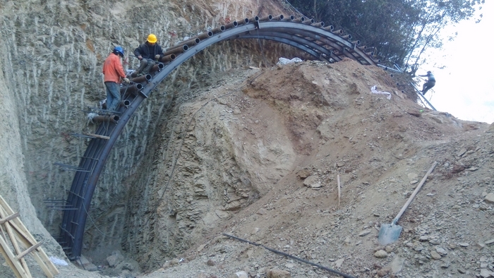 項目前期輔助工程完成了包括便道A1-1進場道路、A1-1支線道路、鋼筋加工場、民工班組駐地、棄土場。此外,項目部注重人才培養(yǎng),要求應屆大學畢業(yè)生動手動腦親歷親為,繪制CAD圖、工程量統(tǒng)計,熟練運用GPS、全站儀、水準儀進行現(xiàn)場放樣,參與洞口施工全過程,理論與實際相結合,為強化香麗高速公路建設生產(chǎn)管理工作提供人才和技術支撐。