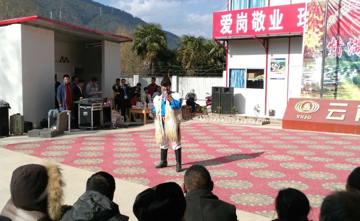此次演出由駐地項目部與玉龍縣政府共同舉辦,包括藏族歌舞、納西族歌舞、民族樂器演奏等節(jié)目,以展示香麗高速公路項目沿線以藏族、納西族居多的民風民俗。演出結(jié)束后,現(xiàn)場的當?shù)鼐用窈晚椖坎柯毠?、演員一起聚集到項目駐地餐廳品嘗民族小吃。品嘗會上,大家互動交流、氣氛融洽。