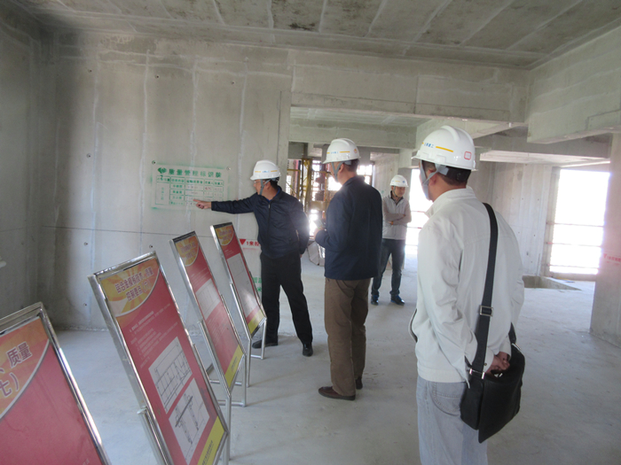 吳志鑫向彭楠一行詳細(xì)介紹了龍潤園一期項(xiàng)目建設(shè)情況,并陪同到現(xiàn)場進(jìn)行了實(shí)地參觀。彭楠一行對第三直管項(xiàng)目部優(yōu)良的項(xiàng)目管理和優(yōu)質(zhì)的項(xiàng)目實(shí)體質(zhì)量表示贊賞,并詢問了一些技術(shù)及管理問題,表示將進(jìn)一步加強(qiáng)交流,尋求合作。