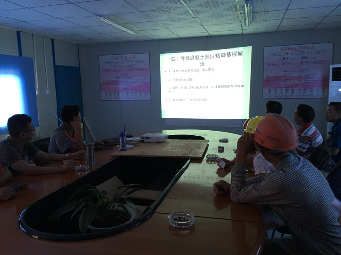 根據(jù)“質(zhì)量月”活動安排,五〇六直管部對元江棚戶區(qū)改造項目現(xiàn)場質(zhì)量各個工序進行了全面檢查,結(jié)合主體結(jié)構(gòu)施工關(guān)鍵階段,針對該地區(qū)氣溫較高的特殊作業(yè)環(huán)境,組織各施工班組共60余人,采用PPT的形式,對項目部管理人員、主體砌筑施工班組、粉刷班組等勞務(wù)班組進行質(zhì)量技術(shù)交底,把質(zhì)量管控貫穿于施工管理全過程。